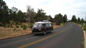 L’excitation tombe et survient alors la fatigue. Nous nous offrons une sieste dans la voiture, qui dure plus de 1h30. Le réveil est dur, nous sommes en nage (le soleil est maintenant présent) et je suis glauque comme jamais. Nous allons dîner (comme disent les Québécois) au Maswik Lodge. Une dame m’aborde avec un grand sourire et me dit : You look cleaner than this morning in the bus… Ooops… c’est vrai qu’entre temps nous nous sommes un peu débarbouillés, en attendant LA douche du soir.