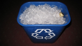 Une poubelle de recyclage reconvertie en seau à champagne ? Bingo… Nous voulons fêter notre aventure dignement et sommes passés au Tusayan General Store acheter une bouteille de Moët et Chandon.