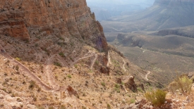 Nous avons décidé de remonter via le South Kaibab Trail même si toutes les personnes à qui nous l’avons dit nous ont regardés avec des grands yeux en nous disant “Mais… mais c’est raide ! Et en plus il n’y a pas d’eau”. Mais nous, nous désirons tout simplement… faire une boucle.