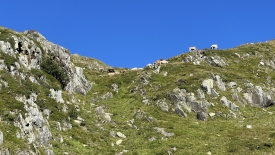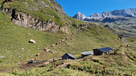 A l’alpe Corno, les bergers éparpillent les vaches dans le pré. Certaines sont réfractaires, en dépit du chien qui s’évertue bruyamment à leur faire prendre la bonne direction. Même les sifflements et menaces de coup de bâton du berger n’y font rien. Las, ce dernier ouvre la clôture pour leur permettre d’aller où bon leur semble.