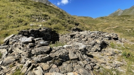 Sur le bord du sentier, deux petites ruines attestent qu’autrefois ce coin de montagne était pâturé.