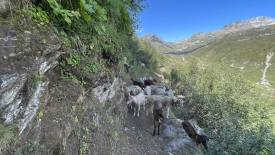 A la sortie d’un virage, nous nous trouvons nez à nez avec un troupeau de chèvres et sa bergère.