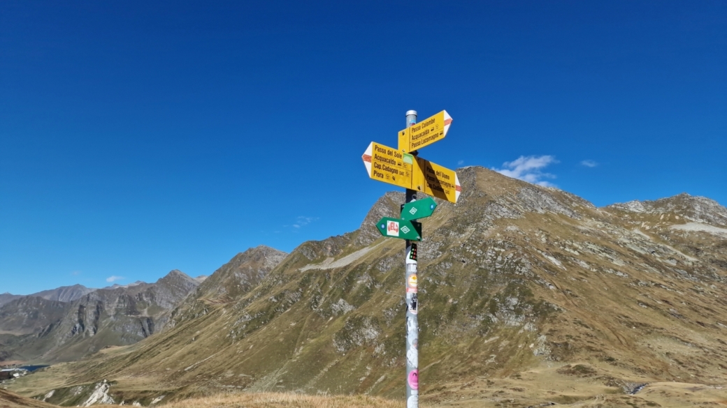 Il est midi et nous sommes à une jonction de plusieurs sentiers. Nous prenons la direction du Passo del Sole.
