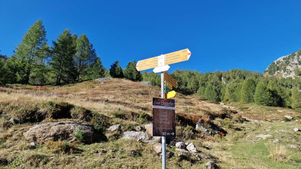 La randonnée du jour va nous amener à redécouvrir des endroits du Val di Blenio visités en 2023, à savoir le Passo delle Colombe, le Lei Pécian et le Passo del Sole. Cette fois – fort heureusement – le ciel est bleu, du moins en matinée.