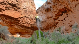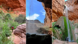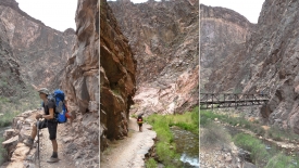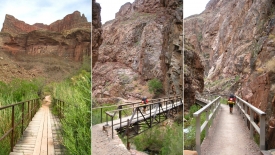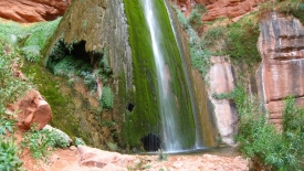 Ce matin, nous quittons Cottonwood Campground pour retourner à Bright Angel Campground et y passer la nuit. En chemin, nous faisons un détour pour admirer les Ribbon Falls, jolies chutes où l’eau tombe sur des rochers recouverts de mousse.