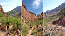 Nous parlons de l’invasion des tamarisks et des moyens de lutter contre. Il nous raconte qu’à Indian Gardens une femme de ranger avait introduit des mûres (blackberries) afin de pouvoir faire des tartes. Les mûriers ont tellement aimé le climat qu’ils ont envahi les berges de Bright Angel Creek empêchant même les animaux de s’abreuver. Après une bagarre politique, les rangers ont obtenus l’autorisation de les éradiquer, avant qu’ils n’atteignent le Colorado.
