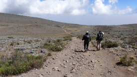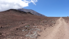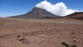 Un dernier regard sur Kibo et surtout sur cette longue face désertique et pierreuse que nous avons gravie ce matin.