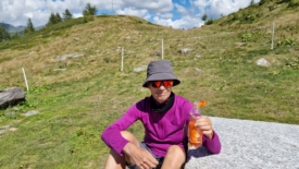 Les framboises ont fait place aux myrtilles. Elles sont gouteuses mais… microscopiques. A chaque arrêt, Stefano m’offre sa récolte. Tu as besoin de sucre, me dit-il, la montée n’est pas encore finie.