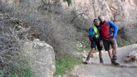 Arrivés hier vers 13h au Grand Canyon, nous avons voulu vérifier tout de suite si nos gambettes étaient prêtes pour deux rim to river to rim. Nous sommes donc descendus en marche rapide à Indian Garden et remontés un peu moins rapidement à quelques minutes près. Une heure et cinquante-quatre minutes pour descendre, deux heures et sept minutes pour remonter. Nous étions euphoriques. Pour mémoire, en descendant, nous avons dépassé un couple avec un enfant de deux ans que nous avons croisé à nouveau en remontant. Ils étaient en route pour Indian Garden pour y passer deux nuits.