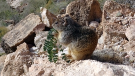 Le South Kaibab trail a lui aussi sa série de switchbacks assassins. À la descente, comme à la montée, même si la descente est un poil plus facile vu qu’il n’y a pas Madame Gravité pour vous alourdir. Nous y croisons deux randonneurs qui montent et qui ne sont pas de bonne humeur, répondant à peine à notre salut enthousiaste. Nous y croisons aussi également un joli écureuil.