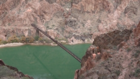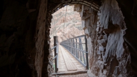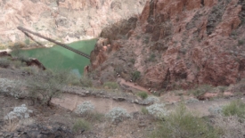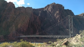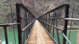 Le Colorado fait maintenant partie de la vue. Un train de mules s’apprête à traverser le pont.