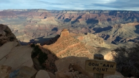 Ooh AAh point. À chaque fois, ce nom nous rend hilares. C’est le premier point de vue « officiel » du South Kaibab trail. Au centre, O’Neill butte.