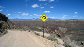 Nous rejoignons la route empruntée hier pour arriver à Taos, puis la NM-567, une piste qui descend dans la gorge et la traverse.