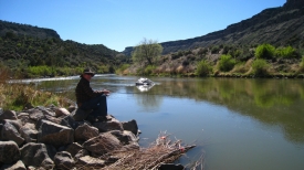 De l’autre, une petite plage, le Rio Grande et des pêcheurs de truites avec qui nous échangeons quelques mots.