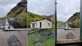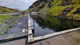 Partis d’une recommendation trouvée sur le net, nous nous retrouvons face à un sentier au milieu de nulle part, qui semble aller nulle part… Une vieille bicoque, un bassin de béton, de vieux tuyaux rouillés, une eau tiède et un peu trouble… Voici les ingrédients qui ont fait de notre baignade à Seljavallalaug, LE moment fort de notre séjour en Islande.