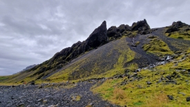 Au bas de cette photo, les plantes vertes un peu plus foncées sont des Lupinus nootkatensis, ces plantes invasives, introduites dans les années 1940, dont je parlais lors d’un billet précédent. Si elles devaient s’étendre et recouvrir le fond de cette vallée, puis les pentes, ce paysage magnifique s’en trouverait défiguré. On comprend mieux les velléités d’éradication de certains islandais.