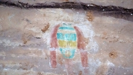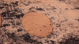 La couleur noire est sans doute de la suie appliquée en guise de peinture. Des spirales ont été dessinées avec de la boue.