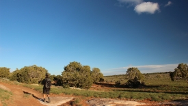 Le Garmin de Stefano annonce des ruines dans un cirque du bord du canyon mais nous ne dévions pas de notre route. Nous stoppons quelques secondes pour repérer l’endroit, prendre une photo et lui dire : hasta la vista !