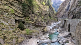 Traversée par un petit pont du Riasco qui prend sa source plus de 1000 mètres plus haut. Le débit est important et l’eau bouillonne.