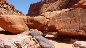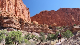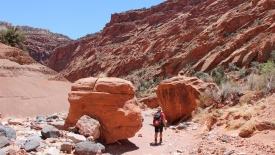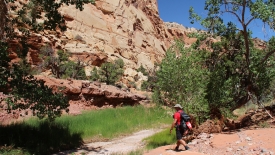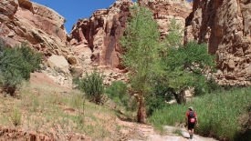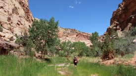 Nous ne pouvions pas nous arrêter à Capitol Reef sans repasser par Spring Canyon. Nous y avions effectué une randonnée en 2009. Durant les mois qui suivirent, si j’avais des soucis qui m’empêchaient de m’endormir, il suffisait que je revive cette balade pour que la sérénité reprenne le dessus et que je m’endorme comme un bébé. Il y a des souvenirs comme ça…