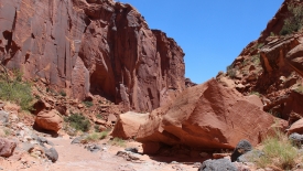 Un jour (mais pas aujourd’hui), nous tenterons d’aller jusqu’au bout du canyon et de rejoindre la rivière. Le seul bémol qui nous retient aujourd’hui et qui nous a retenu en 2009 est l’état de la rivière, car il faut la traverser pour rejoindre la route. Selon le débit et le courant, sa traversée peut se révéler un peu problématique. Le retour en stop n’est qu’une peccadille.