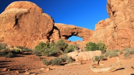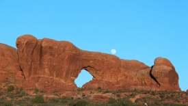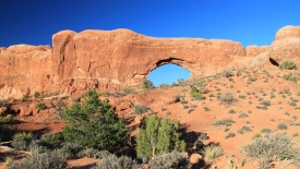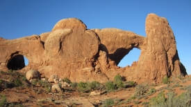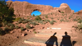 Nous attendons patiemment que North Window se libère de tout touriste, ce qui nous permet d’entamer une discussion avec 4 gars super-cool, dont un porte un tee-shirt de Carcassonne, France, acheté pour 2 dols ici à Moab !