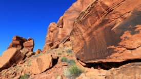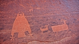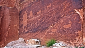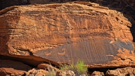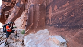 Comme le départ du sentier vers notre destination principale du jour se trouve sur le désormais bien connu Kane Creek Blvd, nous poussons un peu plus loin pour aller saluer The Owl Panel et The Captive Goat Panel, où nous espérons trouver une meilleure lumière qu’hier après-midi.
