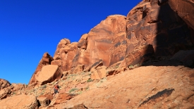 Nous montons par là où nous sommes descendus hier. Directement lorsque le Amasa Back Trail traverse le Kane Creek. La montée est plus intense mais plus fun car elle requiert pas mal de scrambling. Il nous faut moins de 15 minutes pour atteindre Monsieur Le Hibou.