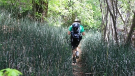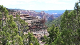 Ce canyon est très atypiques. Des arbres hauts nous masquent la vue.