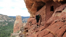Leur état de conservation est excellent. Les Three Fingers Ruins dominent le canyon. Espérons que les enfants qui vivaient ici n’étaient pas trop turbulents car un moment d’inattention se paye par une belle chute.