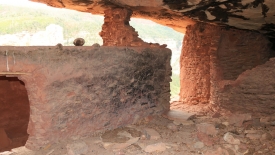 Derrière cette pièce, sans doute un espace de vie. La suie qui noircit la roche laisse deviner que les habitants y cuisinaient.