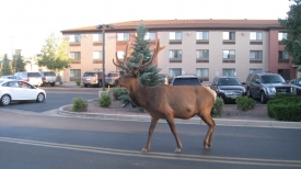 Où allons dîner ? A notre cantine mexicaine bien sûr. Au sortir du restaurant, trois cerfs au milieu du village.