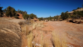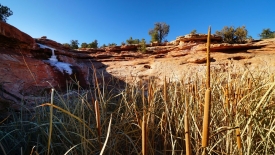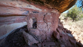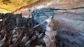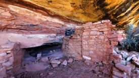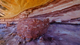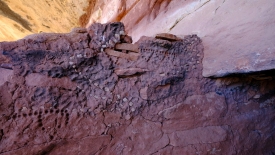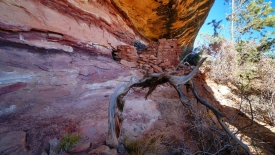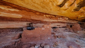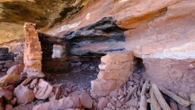 Nous laissons derrière nous la UT-275, la route qui mène à Natural Bridges National Monument et continuons sur une bonne dizaine de kilomètres et nous nous garons au bord de la route. Une petite marche d’approche nous mène vers To-Ko-Chi Canyon et les quelques ruines qu’il abrite.