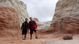 Alors que nous décrottons nos chaussure, le coupe de Seattle arrive… Ils viennent nous voir et nous disent : les deux places que nous avons pour The Wave sont pour notre belle-sœur et son mari. Ils doivent remonter aujourd’hui du Grand Canyon mais nous n’avons pas de nouvelles. Si jamais, seriez-vous intéressés par une autorisation de dernière minute ? Bien sûr, répondons-nous, même si nous sommes tout à fait conscients que c’est sans garantie aucune.
