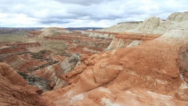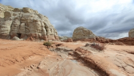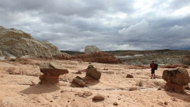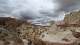 Les rangers nous enlèvent tout espoir d’aller chercher des trailheads sur des dirt roads : ces dernières sont complètement défoncées à cause des pluies et même la route d’accès à Coyote Buttes n’est autorisée qu’aux 4×4, ce que nous n’avons pas. Nous qui pensions pouvoir refaire un tour du côté de Wahweap Hoodoos, c’est raté aussi car la route d’accès qui descend aux hatcheries est une piste.
