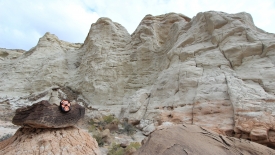 Je suis tranquillement en train de prendre ma photo et je ne vois pas des oreilles de lapin qui sortent de derrière le hoodoo.