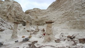 Bientôt les hoodos de sable rose font place aux hoodoos de sable blanc. La couleur des hoodoos est simplement déterminée par la couche de roche dans laquelle ils ont « poussé ».