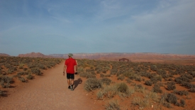 Nous quittons l’hôtel vers 8h30 et partons en direction du Horseshoe Bend. Je n’oserai utiliser le terme de trail pour désigner le chemin menant au point de vue tellement la distance à parcourir est rikiki.