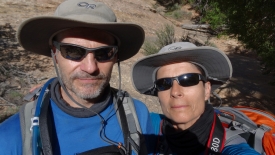 Nous avons fait le tour. Tout comme la première fois, nous remontons par un canyon de slick rock. C’est raide, très raide mais au moins le sol est stable.
