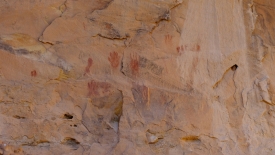 Des mains. Personnellement, ce sont les empreintes de main qui me touchent le plus. Car derrière ces mains, enduites de peinture/teinture, il y avait des êtres humains, femmes, enfants et hommes, appuyant avec enthousiasme (enfin, je suppose) leur main contre la paroi, bien décidés à en laisser une forme parfaite.