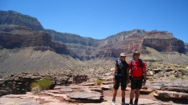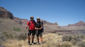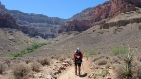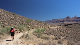 Parti de Plateau Point mi-courant mi-marchant, nous l’avions retrouvé à Indian Gardens puis à un des points d’eau où il s’est ensuite accroché à notre petite caravane car notre rythme constant et régulier, qui permet de monter sans trop souffler (huffing and puffing), lui paraissait plus raisonnable que sa marche rapide …