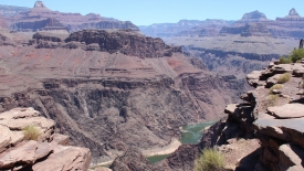 C’est là que nous nous rendons alors compte que le sentier sur lequel je rêve de marcher n’est pas le sentier qui descend à Phantom Ranch. C’est le Tonto West Trail qui mène, entre autres, à Plateau Point. Il est presque 11h et la chaleur arrive doucement. Nous ne sommes pas censés aller plus loin.