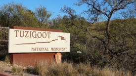 Pour compléter notre journée de « touristes », nous nous offrons une courte visite de Tuzigoot National Monument. Nous partons de Montezuma Castle et nous engageons sur la AZ-260. En pleine réfection, la route nous fait passer par pas moins de 12 rond-points. De certains de ces rond-points partent une route. Pour d’autres, aucune. Étrange. La ville de Cottonwood a très certainement de grands projets d’extension…