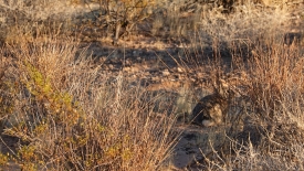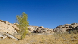 En passant sur une crête de dune, nous repérons ce qui pourrait ressembler à un pâturage, encerclé de dunes. Un lapin détale à notre approche. De l’eau y stagne parfois, comme en témoigne ce cottonwood tree.