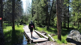Il y a un réseau dense de sentiers autour de l’hôtel et nous avons la journée entière pour les parcourir. Du coup, nous partons explorer le Upper Geyser Basin, le long de la Firehole River, en suivant un agréable réseau de passerelles en bois.