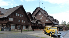 Voici notre hôtel : le Old Faithful Inn. Notre cabine est à l’angle, troisième fenêtre au rez-de-chaussée en partant de la gauche.