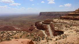 Nous remontons sur la mesa par le Moki Dugway. Bien moins impressionnant que ce que nous pensions, même si un écart sur la route peut être fatal.