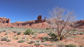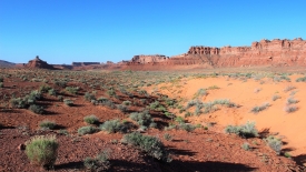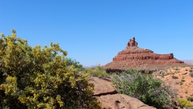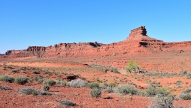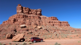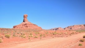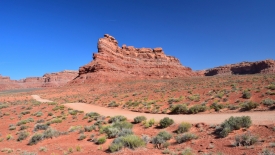 Stefano nous offre une journée de repos, ce qui nous empêche pas de nous lever à 6h et de se mettre en route à 7h. Les vacances sont les vacances, journée de repos ou pas. Nous partons, tout guillerets, vers Monument Valley, en passant par Bluff et Mexican Hat. L’idée est de nous arrêter d’abord à Valley of the Gods et de continuer ensuite par les buttes mythiques de Monument Valley et de revenir sur Blanding par la UT-261 via le Moki Dugway (enfin ! ). Quel programme !