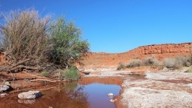 À l’entrée de la piste, un wash dont les pierres sont recouvertes de cristaux blancs.