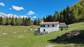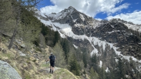 Comme il encore tôt, je reviens sur ma petite idée de départ et propose à Stefano de monter encore, en direction du Passo del Forno. Nous savons pertinemment que nous ne pourrons l’atteindre en raison de la neige et de l’heure tardive. Mais l’objectif est de rallonger la balade et de découvrir de nouveaux paysages, en profitant pour nous mettre quelques mètres de plus de dénivelé dans les mollets. Car, il nous faut toujours mériter le repas du soir.